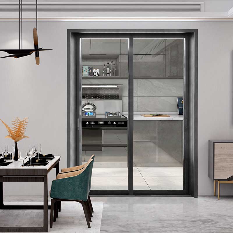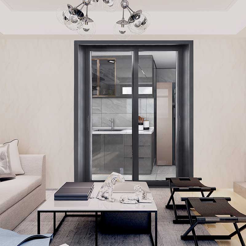 Aluminiumsstangen er fylt med et tørkemiddel, inertgass og lydisolerende materiale, noe som sikrer effektiv lydisolering. Den integrerte bøyeteknologien til den hule aluminiumsstangen, kombinert med lav vanndampoverføringshastighet butylgummi og to-komponent nøytral silikongummi, gir store hulrom og effektiv lydisolering. Dørbladet har en innebygd flat rammedesign, som gir et bredere syn uten å være prangende.
